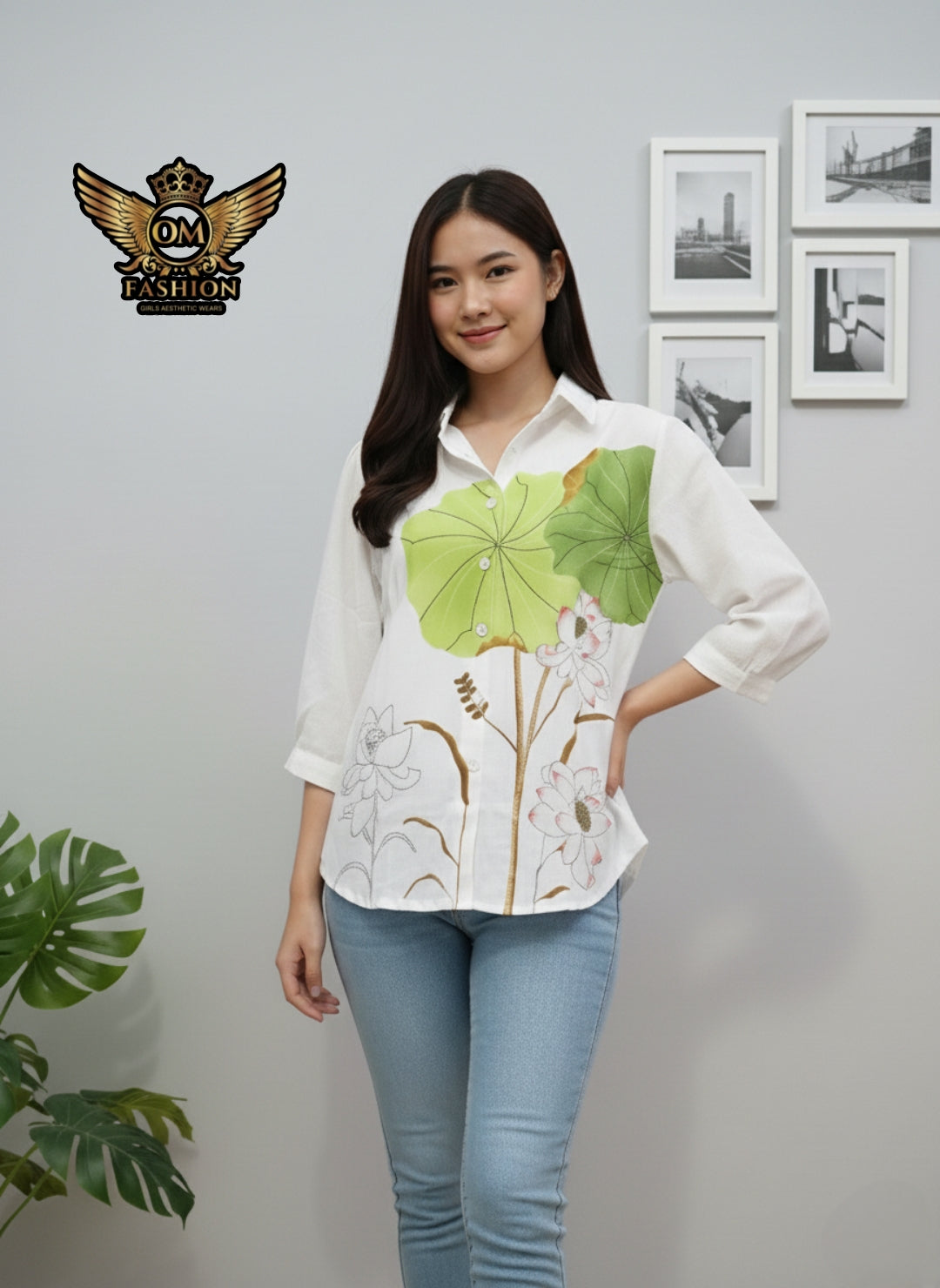 Elevate your everyday style with this elegant hand-painted floral topper, designed to bring a blend of comfort and artistic charm to your wardrobe. Crafted from soft, breathable fabric, this white shirt features a stunning bold blue blossom paired with delicate lotus illustrations, creating a perfect balance of modern and traditional aesthetics.
